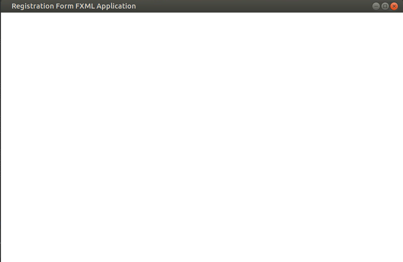 Dans le document FXML ci-dessus, nous créons une mise en page GridPane alignée au centre et présentant un écart horizontal et vertical de 10. Nous spécifions également une marge intérieure de 40px de chaque côté. La balise columnConstraints permet d’ajouter une contrainte à tous les composants de l’interface utilisateur placés dans cette colonne. Plus précisemment, tous les composants placés dans la première colonne seront alignés à droite et auront une largeur minimale de 100px et une largeur préférée de 100px. De même, tous les composants placés dans la deuxième colonne auront une largeur minimale de 200px et une largeur préférée de 200px. Ils s’agrandiront aussi horizontalement et rempliront l’espace supplémentaire si l’écran est redimensionné (propriété hgrow="ALWAYS"). Les controleurs (champs de saisie, étiquettes et bouton) n’étant pas encore créés, on obtient la fenêtre ci-dessous lorsqu’on exécute le code.